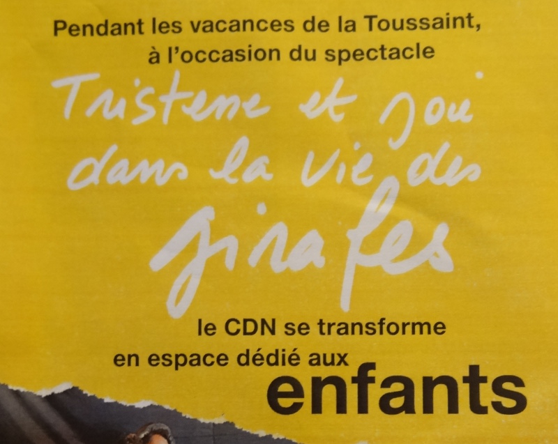 Tristesse et joie dans la vie des girafes, un spectacle pour enfants à partir de 9 ans du 17 au 23 octobre au CDN.