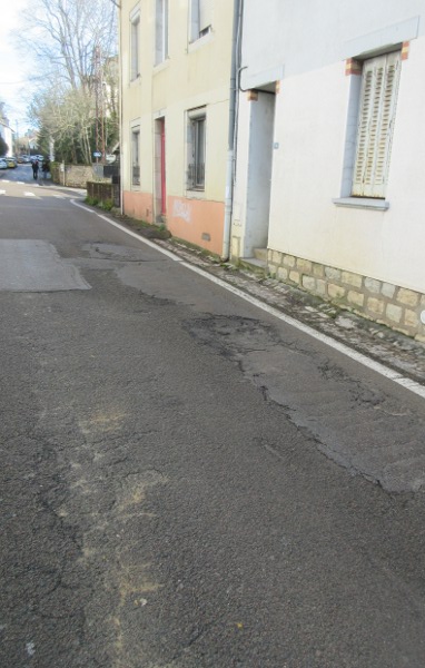 Des chaussées dégradées sont nombreuses et cela ne se limite pas à un trou mais révèle un affaissement sur une grande surface exemple rue de la Rotonde