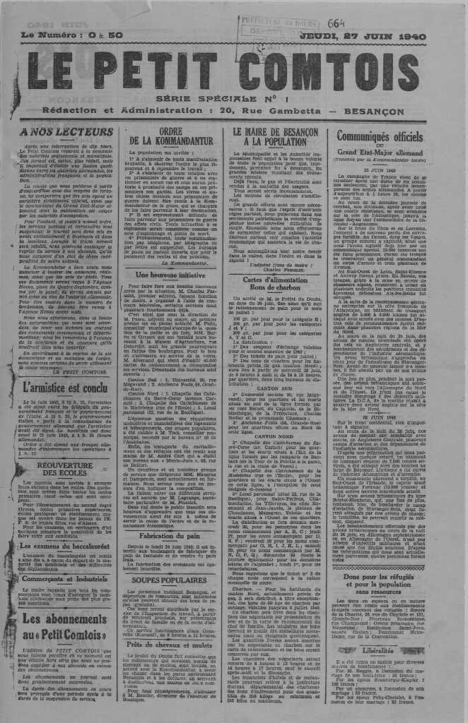 Lire la suiteEn 1941, le journal Le Petit Comtois publie un Almanach. Rappelons que la famille Millot, propriétaire de ce quotidien résidait dans le quartier